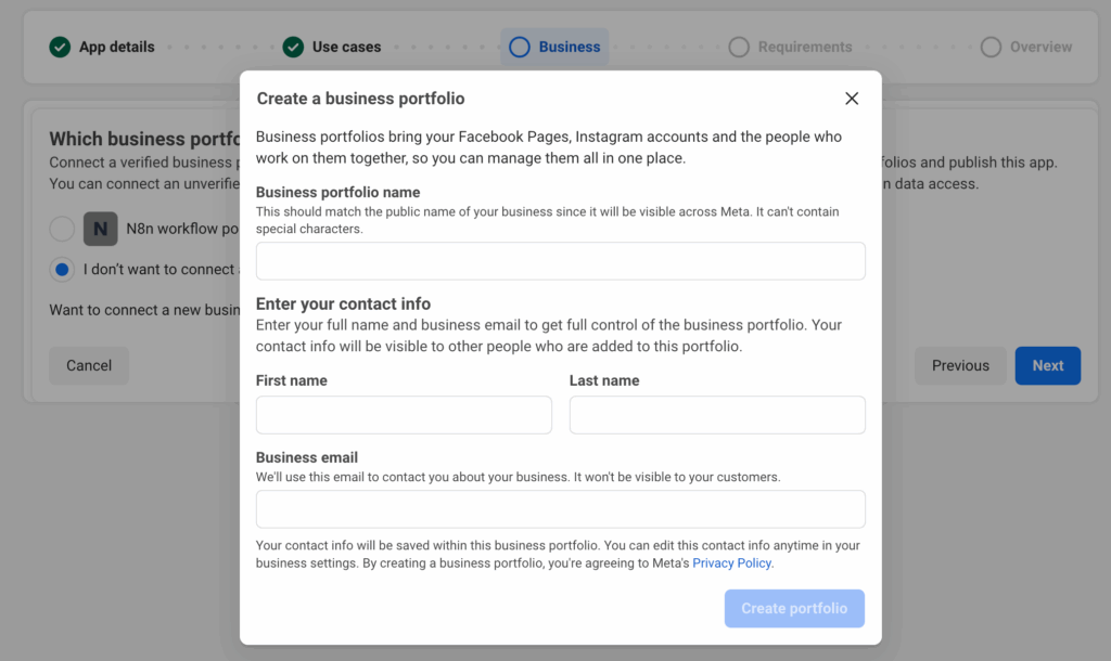 When you click on the create business portfolio then it will ask for basic details and then click on Create portfolio.